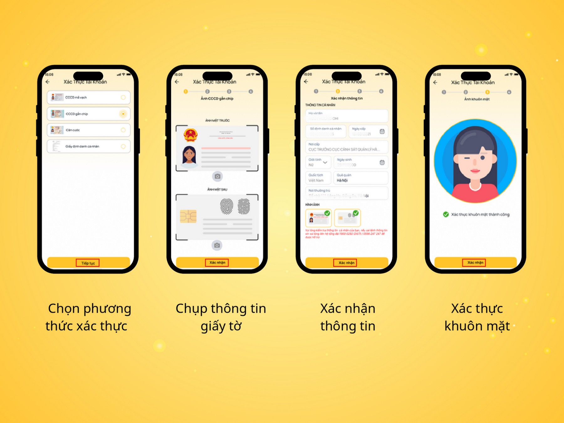 Sau khi khách hàng chụp ảnh giấy tờ và xác nhận khuôn mặt, hệ thống sẽ hiển thị thông báo kết quả xác thực: