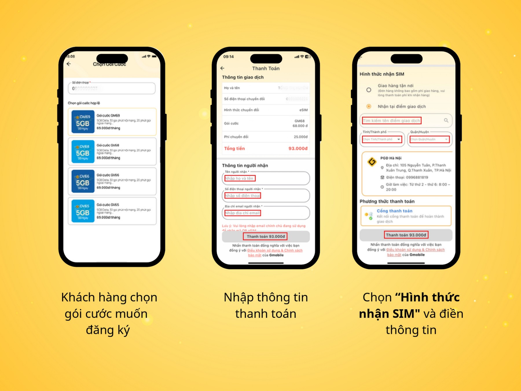 Quý khách hàng có thể đăng ký chuyển đổi SIM 2G/ GSIM sang SIM vật lý tại nhà thông qua ứng dụng My Gmobile với các bước dưới đây: