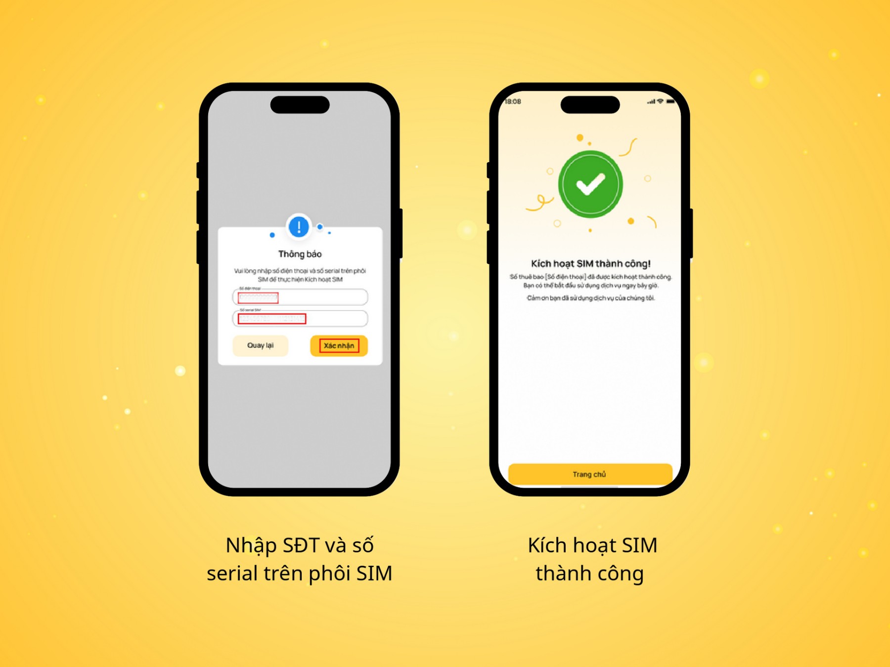 - Quý khách hàng nhập Số điện thoại và Số serial trên phôi SIM để thực hiện kích hoạt SIM.